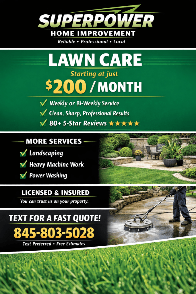 Leaf cleanup at St.John’s in Mahopac!Snow removal at apartment complex in CarmelLeveling yard in Yorktown Water mitigation project in MahopacExcavation cleanup in MahopacHouse powerwash in SomersMulch installation in Somers Snow removal in mahopacConcrete powerwash in YorktownLandscaping(gravel driveway) install in MahopacGarden bed cleanup in SomersLeaf cleanup(landscaping project) in Somers, NYBed clean-out and landscaping in Yorktown, NYLand clearing and landscaping in Mahopac, NyNew offer for Local customers in Mahopac, Somers, and Yorktown!